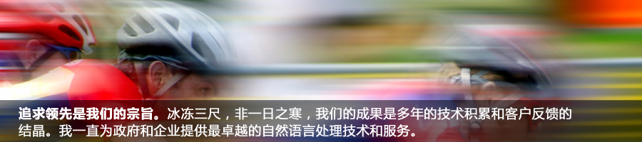 自從成立以來,我們為客戶提供高效和智能化的信息處理工具和咨詢服務。在這個信息爆炸的時代,如何讓互聯網上和企業內部的海量信息為我們帶來更多的價值需要高度智能化的信息處理工具。我們提供的技術能夠高效并且準確的對大量文本信息進行處理、檢索、挖掘、翻譯等工作,并可方便地與信息系統的其他模塊進行整合。
